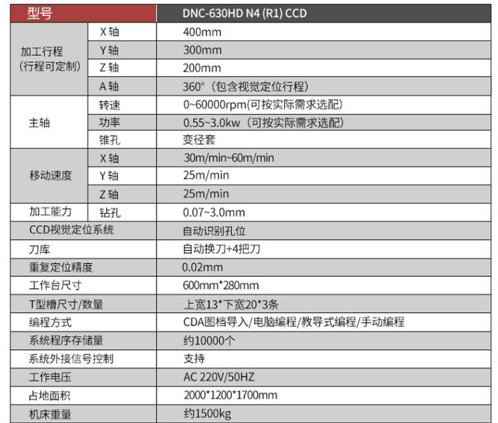 DNC-630HD N4(R1)CCD高精度視覺四軸數控鉆孔機,配備CCD視覺定位系統(tǒng)的微孔高速鉆,專門針對軸類產品的微孔孔加工,有效加工行程X軸400*Y軸300*Z軸200mm*A軸旋轉360度,適合需要多角度自動分度及自動定位鉆孔的產品。