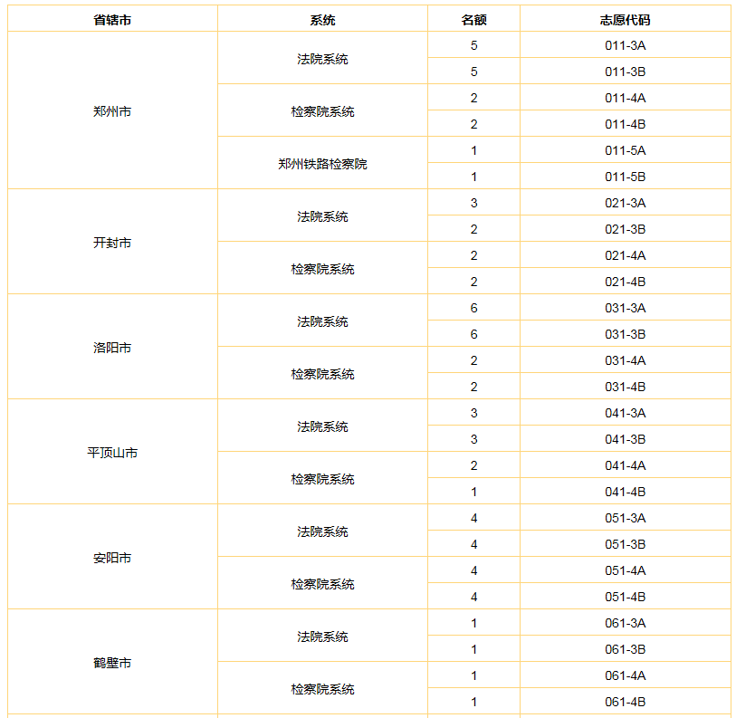2023年河南選調(diào)生考試法檢專項(xiàng)名額分配及志愿代碼表