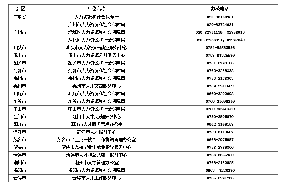 廣東省2023年“三支一扶”計劃招募工作聯(lián)系方式