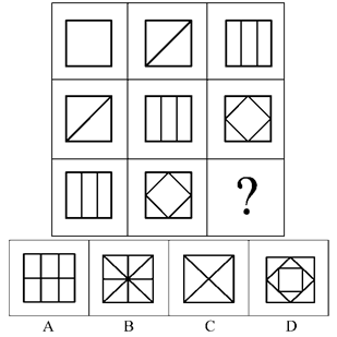 每道題給出一套或兩套圖形,要求應(yīng)試人員通過觀察分析,找出圖形排列的規(guī)律,選出符合規(guī)律的一項(xiàng)。