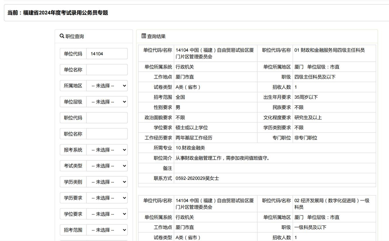 廈門自貿(mào)片區(qū)管委會(huì)2024年度公務(wù)員招考職位公告