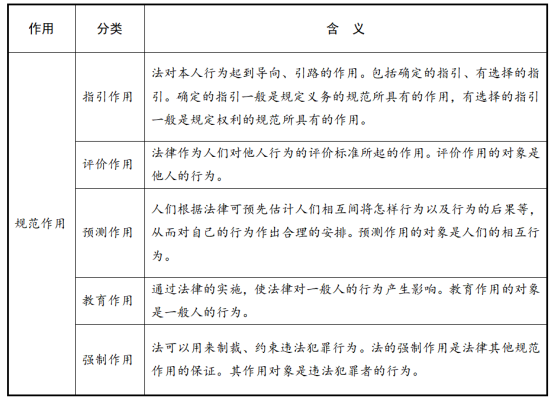 (1)法的特征:法是調(diào)整人的行為的社會(huì)規(guī)范;法是由國(guó)家制定、認(rèn)可并具有普遍約束力的社會(huì)規(guī)范;法是規(guī)定權(quán)利和義務(wù)的社會(huì)規(guī)范;法是由國(guó)家強(qiáng)制力保證實(shí)施的社會(huì)規(guī)范。