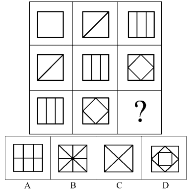從所給的四個(gè)選項(xiàng)中,選擇最合適的一個(gè)填入問(wèn)號(hào)處,使之呈現(xiàn)一定的規(guī)律性: