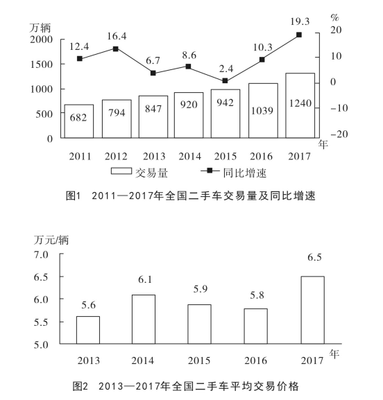 B.2011~2017年,全國二手車交易量同比增速第4高的年份,當(dāng)年二手車平均交易價(jià)格高于6萬元