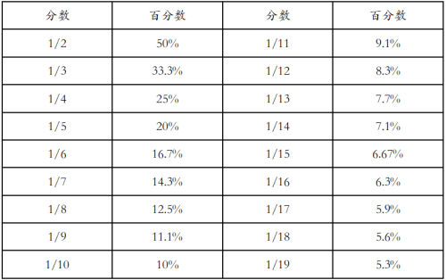 分?jǐn)?shù)百分?jǐn)?shù)轉(zhuǎn)化表