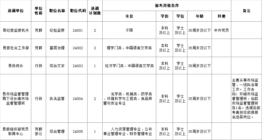 本次計(jì)劃選調(diào)8名公務(wù)員(參照公務(wù)員法管理單位工作人員),詳見《含山縣2024年縣直機(jī)關(guān)公開選調(diào)公務(wù)員職位表》(附件1)。