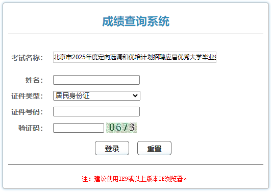 快!2025年北京市定向選調和優(yōu)培計劃筆試成績查詢入口已開通!點擊下方圖片進入成績查詢入口: