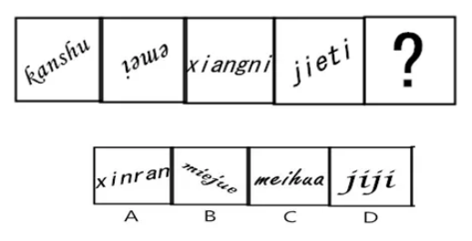 找到規(guī)律以后,便可據(jù)以選擇正確答案。但是,在選擇時一定要仔細,不要發(fā)生視覺錯誤。當然,最好是將所選答案去印證一下自己歸納出的規(guī)律。如果符合規(guī)律,則所選答案八九不離十;如果所選答案不符合自己確定的規(guī)律,則需再仔細琢磨琢磨。