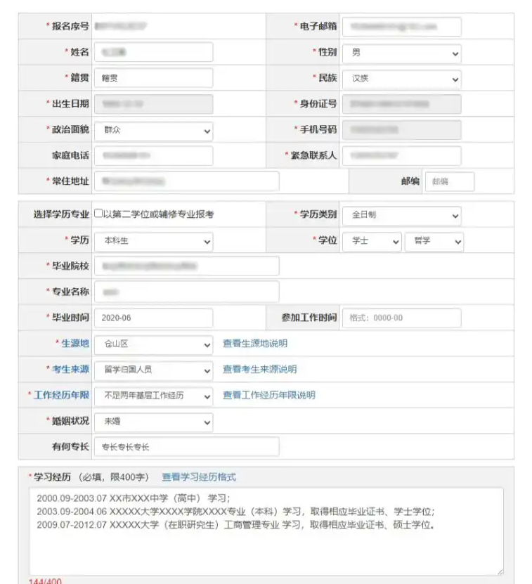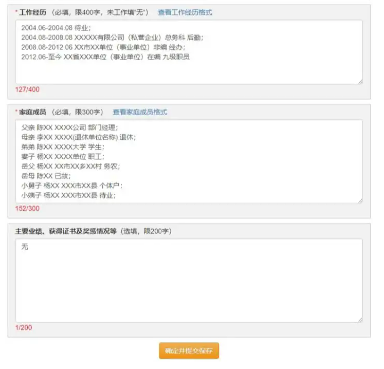 標(biāo)有“*”的項(xiàng)目為必填項(xiàng)目,報(bào)考者填寫的文字內(nèi)容不得超過(guò)限定的最大字符數(shù),并嚴(yán)格按照提示格式填寫。