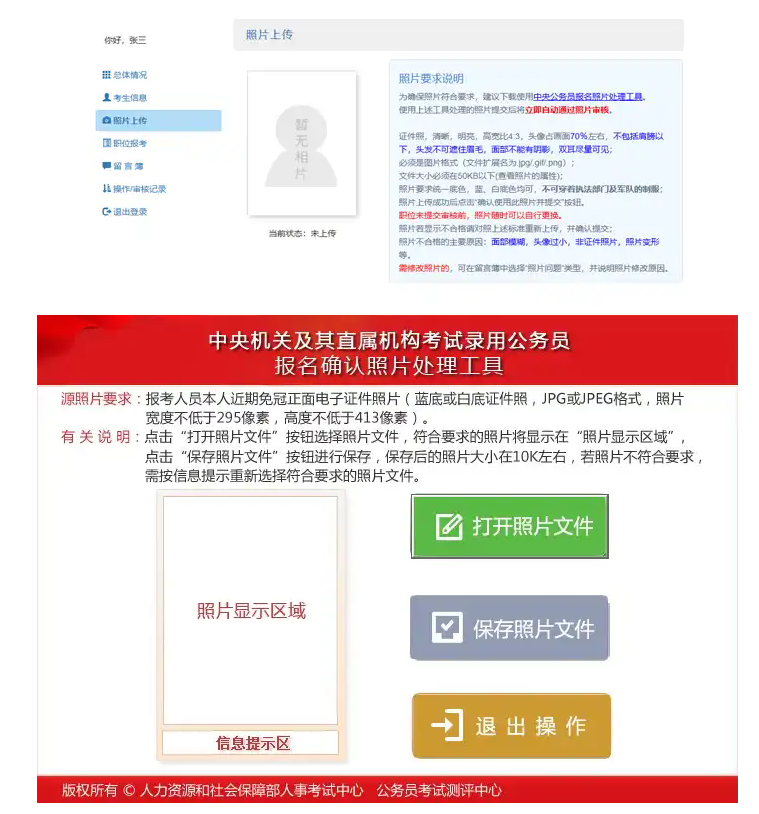 照片信息會(huì)對(duì)審核結(jié)果產(chǎn)生影響,照片審核不通過(guò)的,將影響資格條件審核,需重新提交合格的照片。為確保上傳照片的質(zhì)量,網(wǎng)站提供了照片處理工具。建議報(bào)考者下載該照片處理工具,先在本地使用該工具對(duì)用以報(bào)名的照片進(jìn)行處理后,再上傳到報(bào)名網(wǎng)站。使用該工具時(shí),應(yīng)注意: