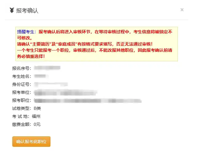 在彈出的新窗口中,點(diǎn)擊“確認(rèn)報(bào)考此職位”按鈕,即報(bào)考成功,等待審核。