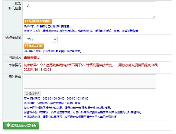 2) 沒(méi)有通過(guò)資格審核的報(bào)考者,可以申訴或者改報(bào)其他職位(操作方式同初次報(bào)考)。
