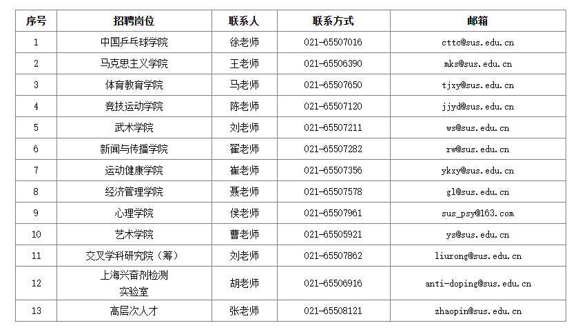 應聘方式:應聘者填寫《2025年上海體育大學應聘人員信息表》(詳見附件2),連同相關(guān)材料(個人簡歷、身份證、學歷、學位、專業(yè)技術(shù)職稱、獲獎證書、個人成果的復印件等集成一個PDF),通過電子郵件(郵件主題為:應聘崗位+姓名)發(fā)送至各用人部門郵箱。