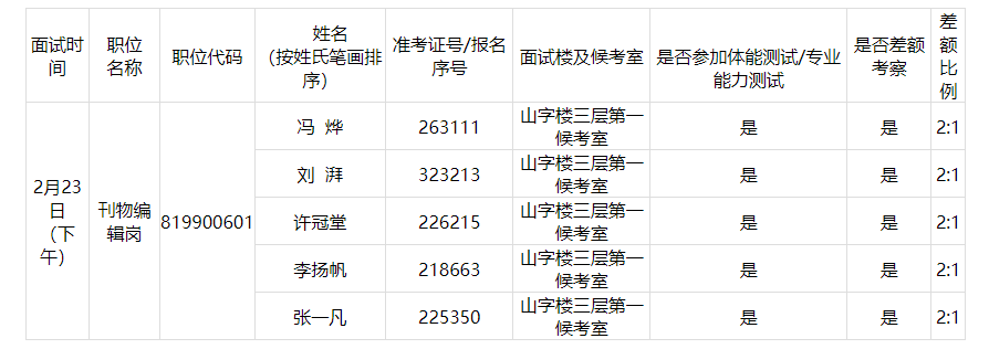 一、面試人員名單