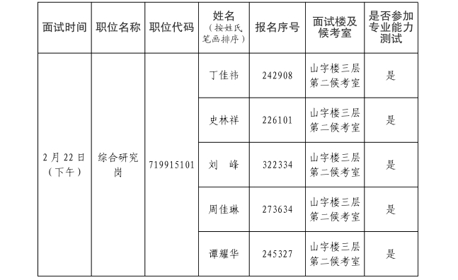 一、面試人員名單