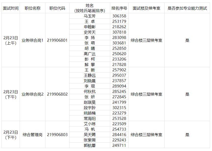 面試簽到時間為面試當(dāng)天上午7:30至8:00或下午12:30至13:00,8:00或13:00停止簽到入場,請考生務(wù)必按照本人參加面試的場次安排,提前到相應(yīng)面試樓前集合等待簽到。入闈封閉管理時間為本人面試當(dāng)天上午8:00或下午13:00,入闈封閉管理前,未到達面試樓完成簽到的,視為自動放棄。