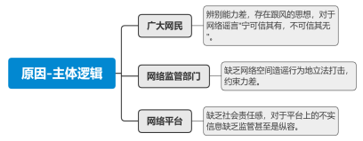 【例題】隨著互聯(lián)網(wǎng)地發(fā)展,人們獲取信息變得前所未有得方便,但同時,網(wǎng)絡(luò)謠言也隨之而來,給人們的工作、生活造成了諸多影響。有人調(diào)侃,在網(wǎng)絡(luò)時代,“造謠動動嘴,辟謠跑斷腿”。請你談?wù)劸W(wǎng)絡(luò)謠言肆虐的原因。