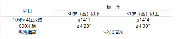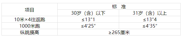 體能測(cè)評(píng)參照《關(guān)于印發(fā)<公安機(jī)關(guān)錄用人民警察體能測(cè)評(píng)項(xiàng)目和標(biāo)準(zhǔn)>的通知》(公政治〔2024〕60號(hào))執(zhí)行,體能測(cè)評(píng)以現(xiàn)場(chǎng)測(cè)評(píng)結(jié)果為準(zhǔn),不另行復(fù)測(cè)。有一項(xiàng)不合格的,體能測(cè)評(píng)不合格。體能測(cè)評(píng)不合格的,應(yīng)聘人員不得參加面試和專業(yè)能力測(cè)試。具體條件如下: