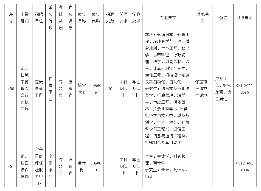 保定市2025年度事業(yè)單位公開招聘工作人員公告《崗位信息表》中,定興縣環(huán)衛(wèi)所006006和定興縣醫(yī)療保險(xiǎn)服務(wù)中心006009的崗位條件以本補(bǔ)充公告為準(zhǔn)。