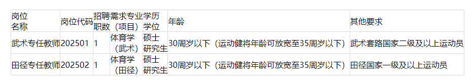 本年度計劃招聘體育專任教師(人事代理)2名,具體見下表。