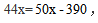 根據(jù)“總利潤(rùn)比預(yù)期減少了390元”可得,