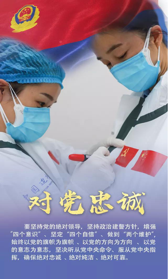 一是對(duì)黨忠誠(chéng)。要堅(jiān)持黨的絕對(duì)領(lǐng)導(dǎo),堅(jiān)持政治建警方針,增強(qiáng)“四個(gè)意識(shí)”、堅(jiān)定“四個(gè)自信”、做到“兩個(gè)維護(hù)”,始終以黨的旗幟為旗幟、以黨的方向?yàn)榉较颉⒁渣h的意志為意志,堅(jiān)決聽(tīng)從黨中央命令、服從黨中央指揮,確保絕對(duì)忠誠(chéng)、絕對(duì)純潔、絕對(duì)可靠。