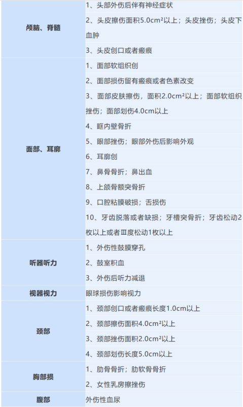 重傷、輕傷、輕微傷認定標(biāo)準(zhǔn)一覽表