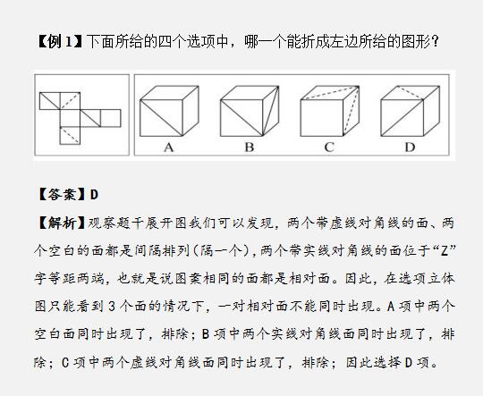 其實(shí),做空間重構(gòu)的題目,并不一定非要用到空間想象能力,我們只要掌握了一定的規(guī)則和技巧,僅僅從平面的角度就可以解決這類(lèi)問(wèn)題。下面,浙江公務(wù)員考試網(wǎng)就帶大家來(lái)認(rèn)識(shí)一下空間重構(gòu)題。
