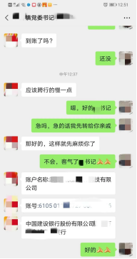 隨后立即提出要求幫忙轉賬匯款的要求,比如親戚借錢、上級領導要求轉賬、朋友急用等等。抓住一般人對領導不敢質(zhì)疑的心理,有時甚至使用“盡快”“馬上”“立即”這些催促性的詞語,既營造了緊張氣氛,又利用時間差降低受害人核實轉賬需求真假的可能性。
