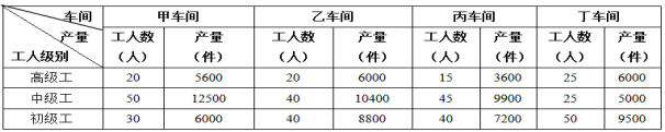 某機(jī)械加工企業(yè)下設(shè)四個(gè)生產(chǎn)車間生產(chǎn)加工同種類型和型號的產(chǎn)品,并以人均產(chǎn)量評價(jià)勞動(dòng)生產(chǎn)率。