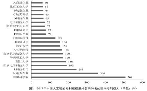 D、2017年排名前20名的國內(nèi)專利權(quán)人,其人工智能專利授權(quán)量占當(dāng)年人工智能專利授權(quán)總量的比例超過了40%