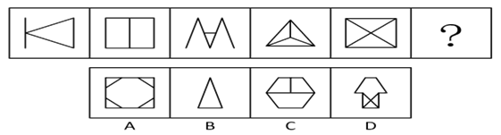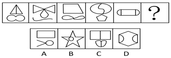 5、從所給的四個(gè)選項(xiàng)中,選擇最合適的一個(gè)填入問(wèn)號(hào)處,使之呈現(xiàn)一定的規(guī)律性:( )