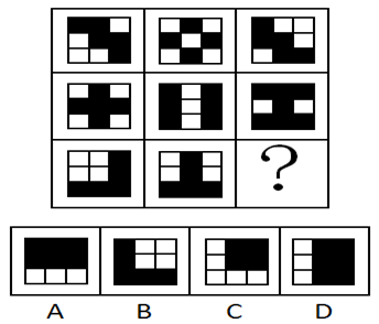 3、從所給的四個(gè)選項(xiàng)中,選擇最合適的一個(gè)填入問(wèn)號(hào)處,使之呈現(xiàn)一定的規(guī)律性:( )