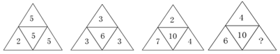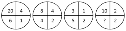 4、從所給的四個(gè)選項(xiàng)中,選擇最合適的一個(gè)填入問(wèn)號(hào)處,使之呈現(xiàn)一定的規(guī)律性:( )