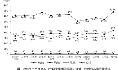 112.2016年一季度至2018年四季度,我國(guó)硫酸、燒堿產(chǎn)量最接近的是( )