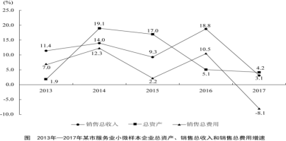 C.2013—2017年該市小微樣本企業(yè)銷售總收入和銷售總費(fèi)用的變動(dòng)方向一致
