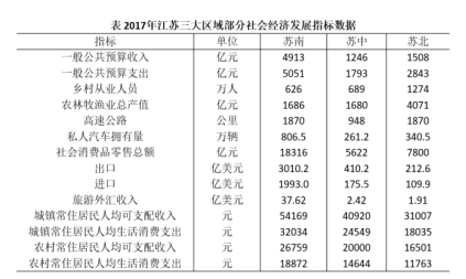 B.2017年蘇北和蘇中地區(qū)進(jìn)口額之和不及蘇南的八分之一