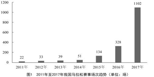 117、2017年我國馬拉松賽事場次比2011年增加了約( )
