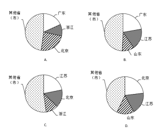 117.下列圖形中,對2019年上半年東部地區(qū)各?。ㄊ校┸浖I(yè)務(wù)收入構(gòu)成表示正確的是( )