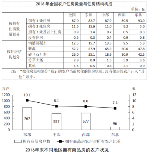 C.東北地區(qū)僅擁有1處磚混結(jié)構(gòu)住房的農(nóng)戶占當(dāng)?shù)剞r(nóng)戶總數(shù)4成以上