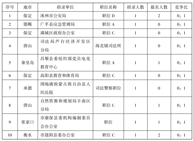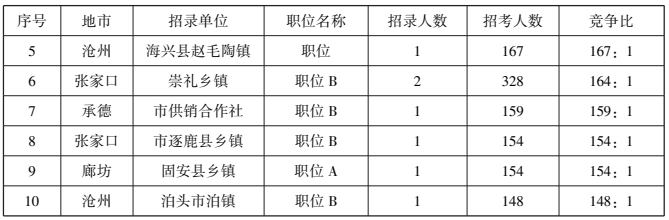 ?。?021年河北省考招錄競(jìng)爭(zhēng)比最小的十大崗位)