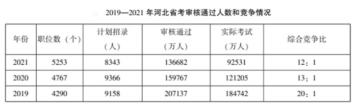 ?。?019-2021年河北省考審核通過人數(shù)和競(jìng)爭(zhēng)情況)
