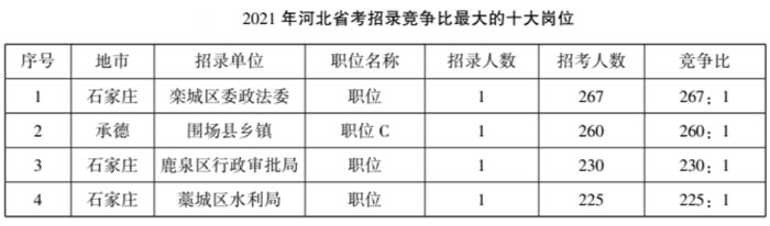 ?。?021年河北省考招錄競(jìng)爭(zhēng)比最大的十大崗位)