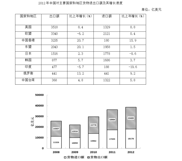B、2008~2012年間,中國貨物出口總額逐年上升