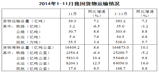 120.關于2014年1~11月我國貨物運輸狀況,能夠從上述資料中推出的是:( )