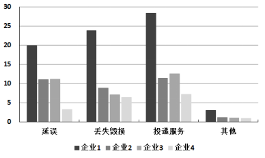 2015年2月,全國每百萬件快遞業(yè)務中,有效申訴量未23.4件,對企業(yè)1的每百萬件有效申訴量為75.13件,環(huán)比增長48.0%,對企業(yè)2的每百萬件有效申訴量未32.56件,環(huán)比增長55.0%,對企業(yè)3的每百萬件有效申訴量為31.86件,環(huán)比增長140.0%,對企業(yè)4的每百萬件有效申訴量為17.81件,環(huán)比增長36.0%。