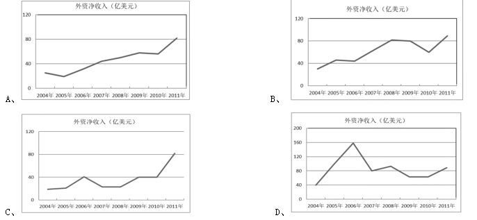89.下列圖形與2004年至2011年B國外資凈流入狀況最為相符的是( )。