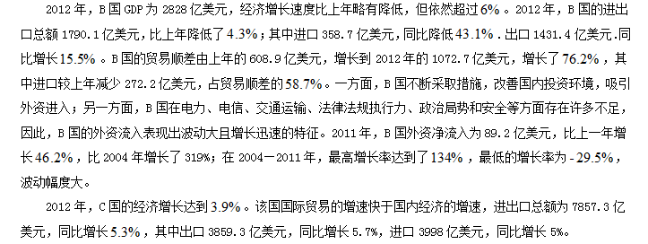 D、2012年,B國貿(mào)易順差的擴大主要是由于進口大幅下降造成的