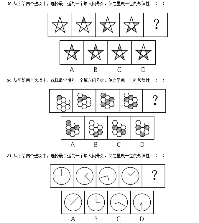 78. 從所給四個選項中,選擇最合適的一個填入問號處,使之呈現(xiàn)一定的規(guī)律性:( )