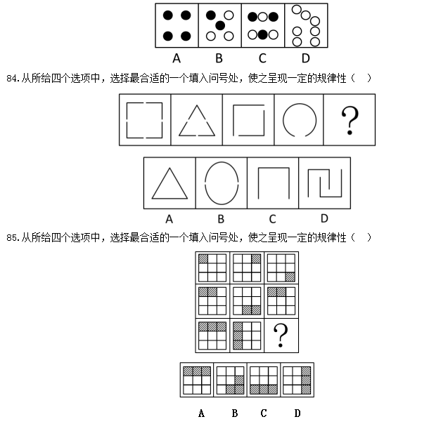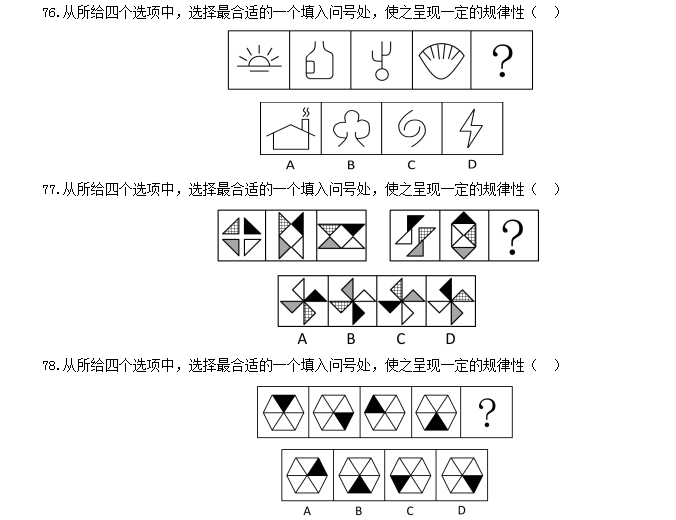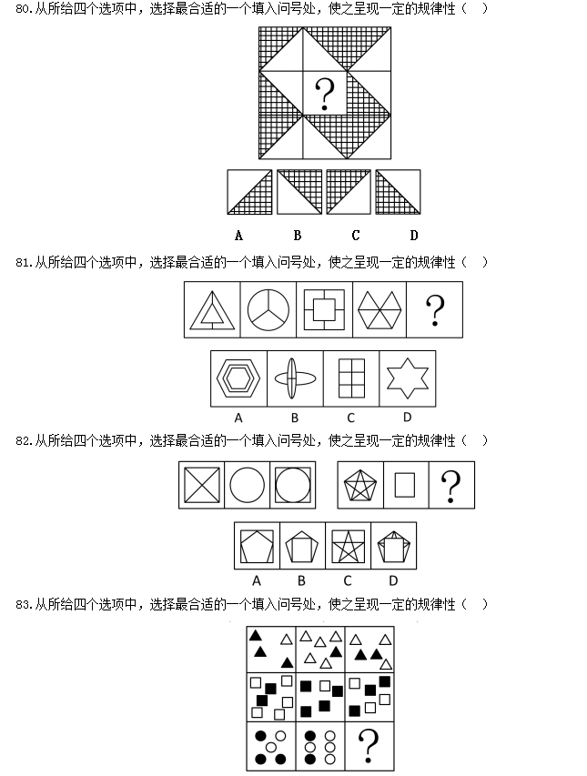 79.從所給四個選項中,選擇最合適的一個填入問號處,使之呈現(xiàn)一定的規(guī)律性( )